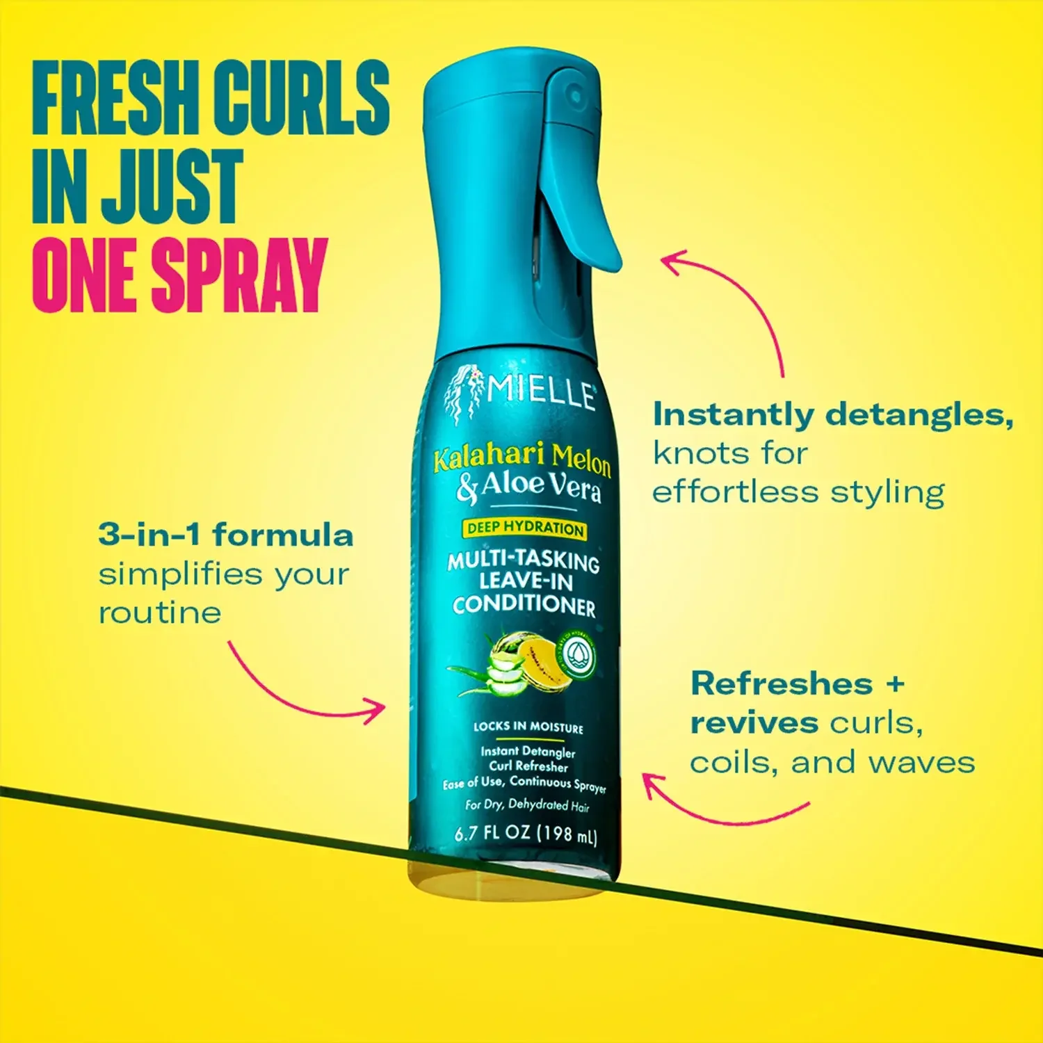 This versatile leave-in conditioner does it all, from detangling to refreshing curls. Its continuous spray delivers even coverage, infusing every strand with hydration while smoothing knots and reviving your natural texture. Whether prepping for a style or giving your curls a midday refresh, this multitasker ensures your hair stays soft, hydrated, and ready for anything.